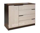 Четыре вместительные выдвижные ящика комода расположены справа, слева - за распашной дверкой отделение с полкой.