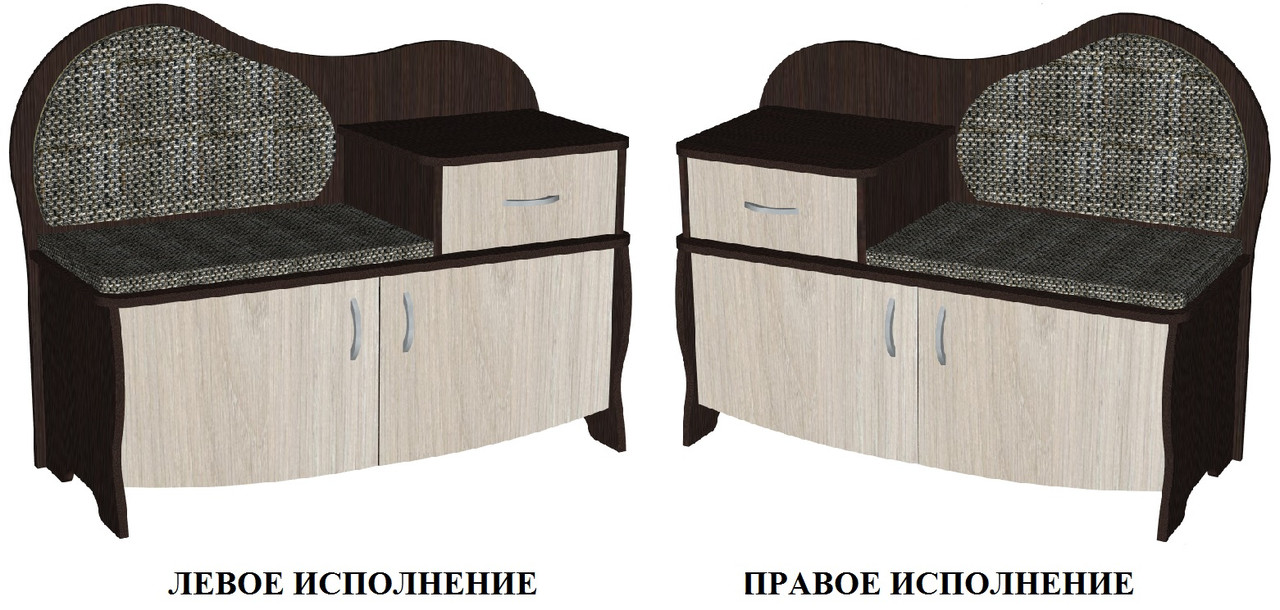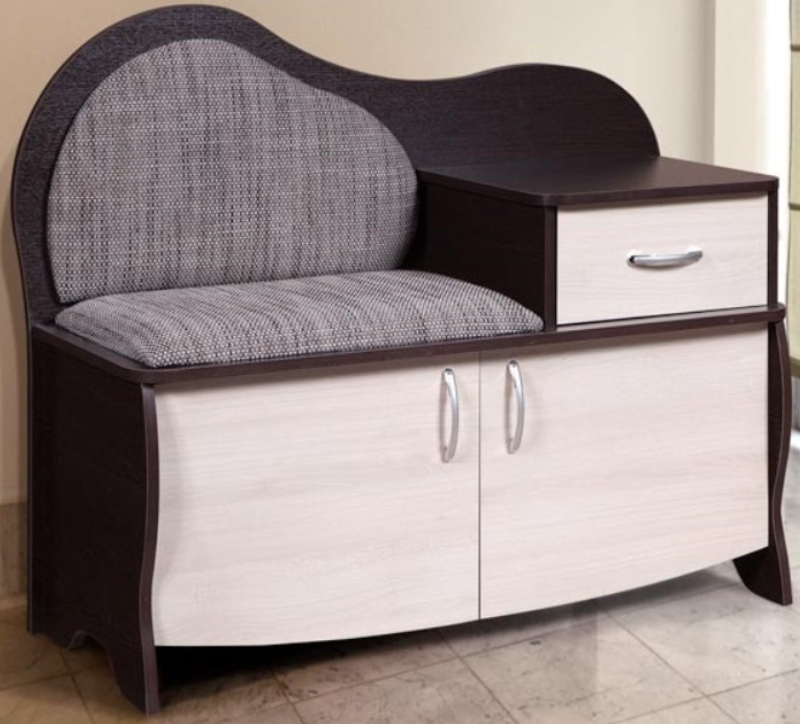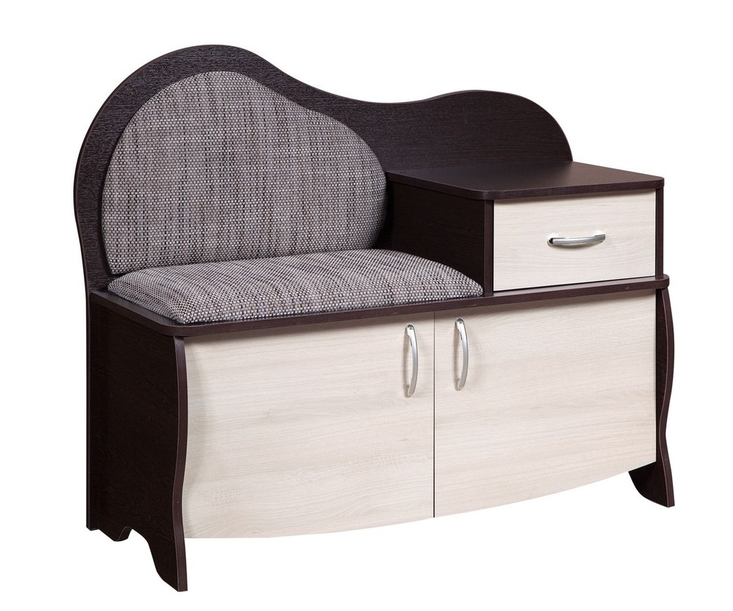 Цвет венге/дуб шамони Высота, см 87,2 Ширина, см 107,7 Глубина, см 40,6 Высота сиденья, см Каркас ламинированная ДСП; кромка – ПВХ 0,45мм Обивка ткань Гарантия 18 месяцев Дополнительные функции полки для обуви -