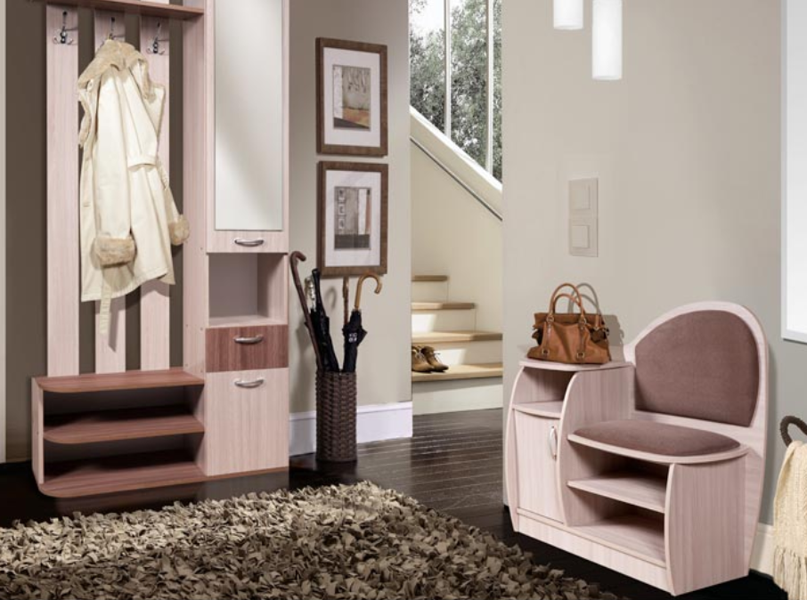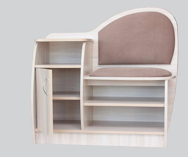 - Материал: каркас/фасад – ламинированная ДСП; кромка - ПВХ 0,45÷2мм; сиденье/спинка - поролон, ткань; ручки – металл.