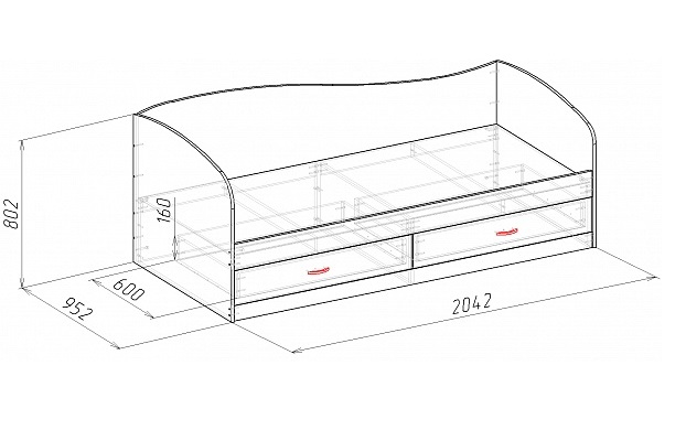 Габариты: 2042 х 952 х 810 мм. СПАЛЬНОЕ МЕСТО: 900 х 2000 мм.
