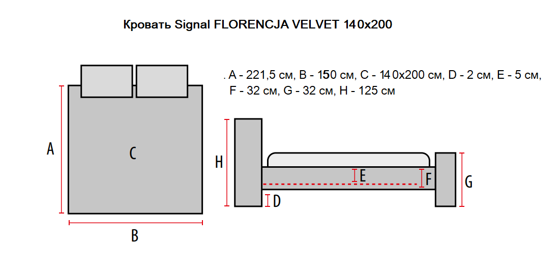 • Кровать с подъемным механизмом Signal FLORENCJA Raven 30 бежевый 140х200