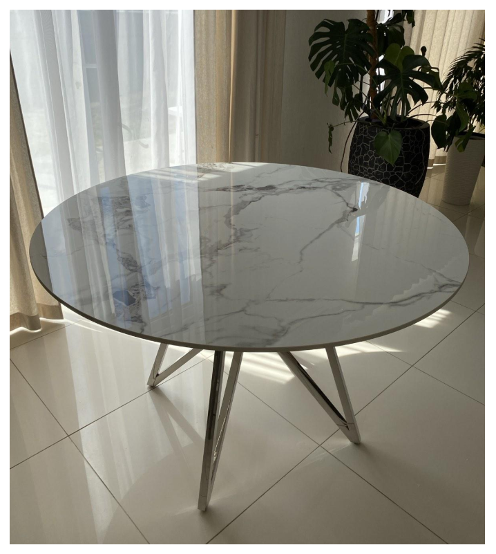 Цвет Серый Цвет белый мраморный/хром Высота, см 76 Ширина, см 120 Глубина, см 120 Каркас хромированный металл Гарантия 24 месяца Столешница керамика, эффект мрамора Тип круглый, не раздвижной Вес, кг 46,3 кг Модель круглый, не раздвижной Материал керамика -