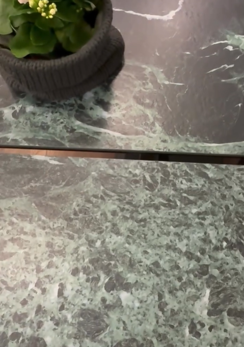 Столешница: закаленное стекло + итальянская керамика Verde Alpi, цвет морской матовый