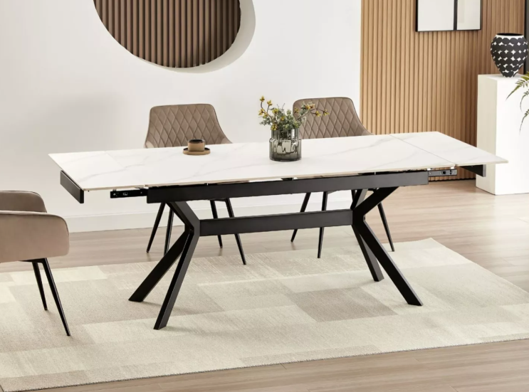 Цвет Белый Цвет белый мраморный/черный Высота, см 75 Ширина, см 160/220 Глубина, см 90 Каркас металл Гарантия 24 месяца Дополнительные функции раздвижной Механизм торцевой механизм раздвижения Столешница керамика Тип прямоугольный, раздвижной Вес, кг 90 кг -