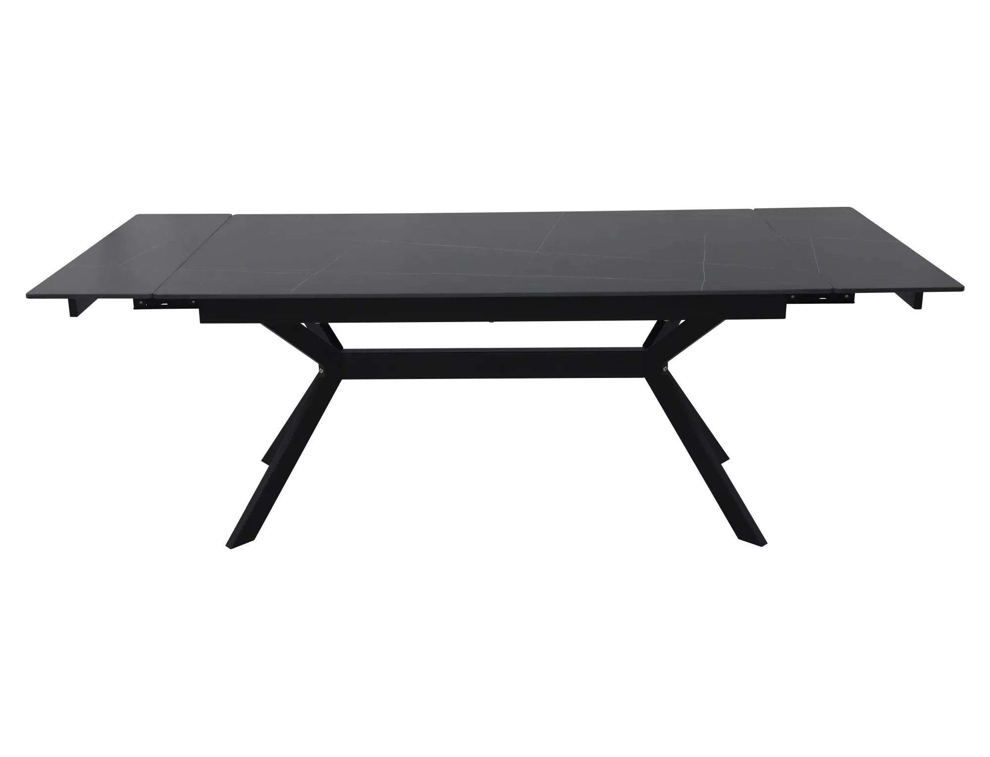 Цвет Черный Цвет черный мраморный/черный Высота, см 75 Ширина, см 180/240 Глубина, см 90 Каркас металл Гарантия 24 месяца Дополнительные функции раздвижной Механизм торцевой механизм раздвижения Столешница керамика Тип прямоугольный, раздвижной Вес, кг 100 кг -