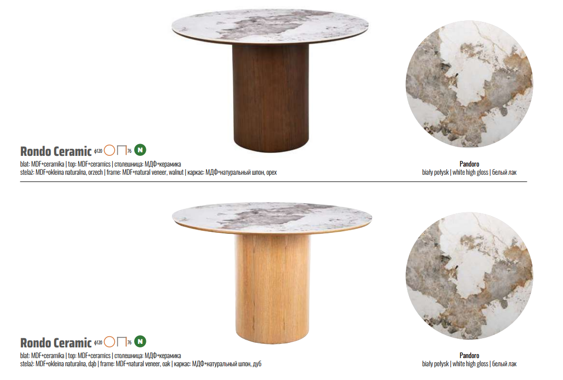 Стол круглый, столешница: МДФ + керамика, эффект белого мрамора PANDORO.