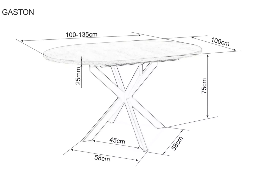 Круглый керамический раздвижной стол для кухни и дома Signal GASTON, цвет: серый мраморный/черный.