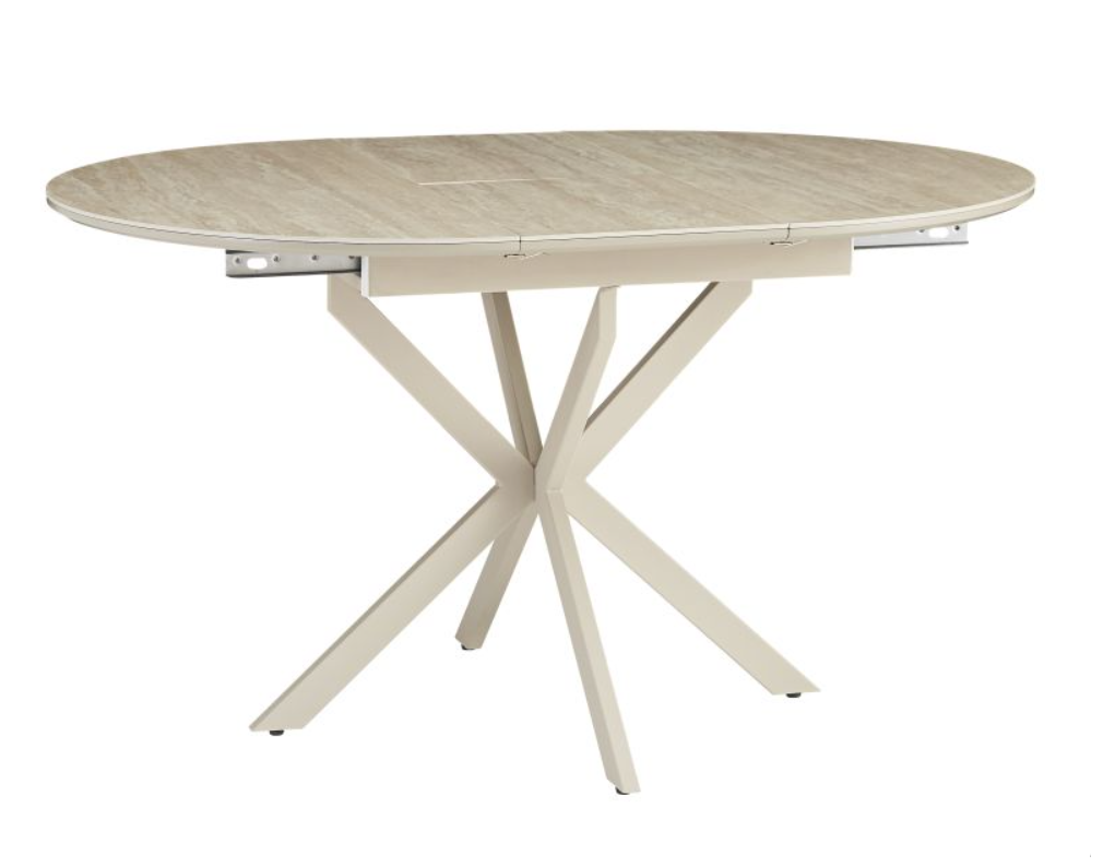 Столешница: керамика + МДФ. Синхронный механизм трансформации вставки: тип «Бабочка», цвет травертин.
