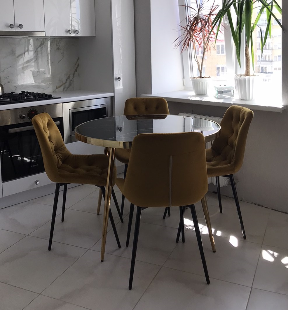 Цвет Черный Цвет эффект черный мраморный/золотой Высота, см 75 Ширина, см 100 Глубина, см 100 Каркас металл Гарантия 18 месяцев Столешница закаленное стекло с эффектом черного мрамора Тип круглый, не раздвижной Вес, кг 28,5 кг Материал стекло мраморный эффект -