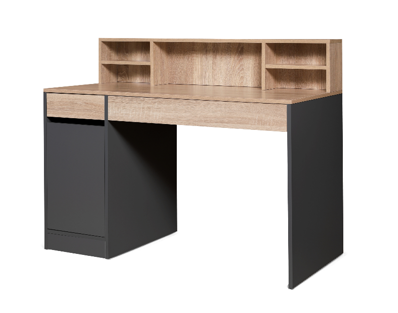 Два больших выдвижных ящика и глубокая ниша с полкой за дверью позволит хранить все рабочие принадлежности в одном месте.
