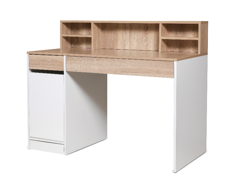 Два больших выдвижных ящика и глубокая ниша с полкой за дверью позволит хранить все рабочие принадлежности в одном месте.