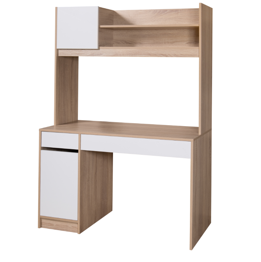 Два больших выдвижных ящика и глубокая ниша с полкой за дверью позволит хранить все рабочие принадлежности в одном месте.