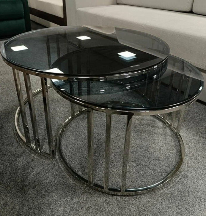 Цвет Черный Цвет дымчатый /хром Высота, см 45/40 Ширина, см 80/60 Глубина, см 80/60 Каркас металл Гарантия 18 месяцев Дополнительные функции комплект из двух предметов Столешница закаленное стекло Материал закаленное стекло -