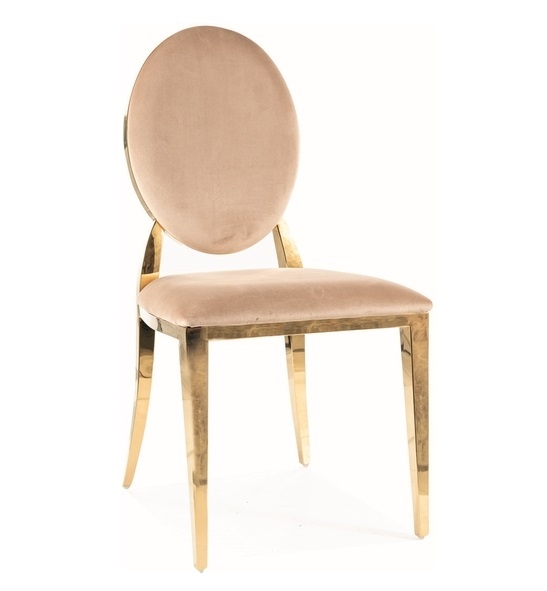 Элегантный стул Signal KING Velvet в стиле ар-деко с металлическим каркасом в цвет золота. Спинка выполнена в форме медальона, придает стулу роскошный вид .