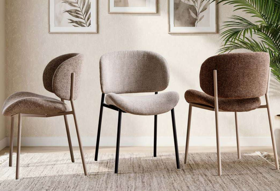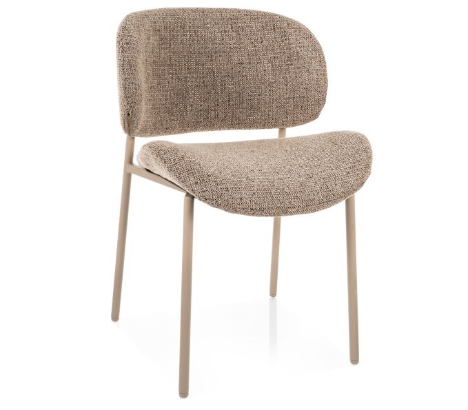 Закругленные края и использование ткани букле делают стул более мягким и нежным.