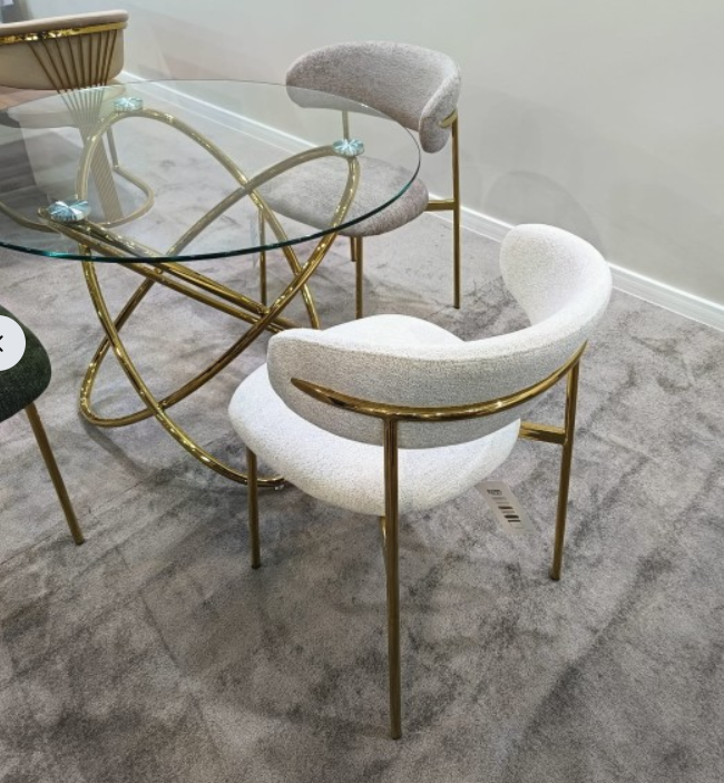 Цвет Бежевый Цвет светлый беж/золотой Высота, см 80 Ширина, см 56 Глубина, см 46 Высота сиденья, см 49 Каркас металл Обивка ткань Гарантия 18 месяцев Вес, кг 7 кг Модель стул с подлокотниками -