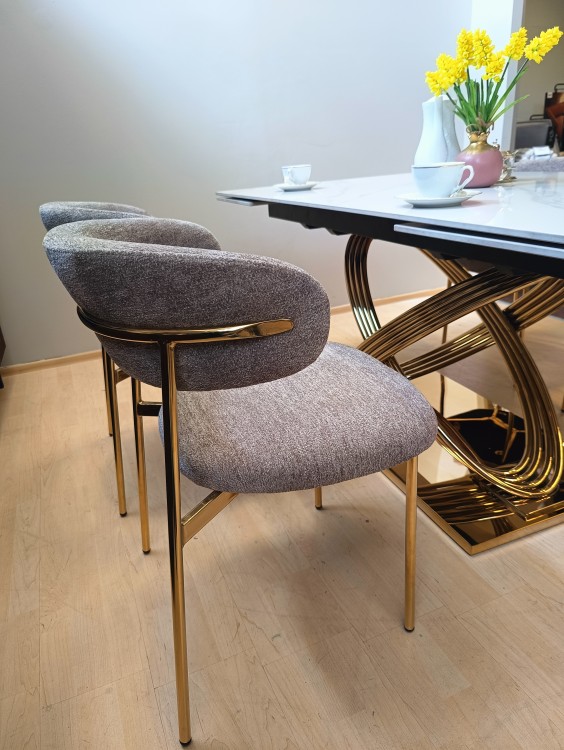 Стул Signal ELTON, цвет темно бежевый в стиле ДЖАПАНДИ с золотым АКЦЕНТОМ.