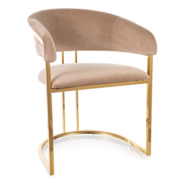 Элегантный стул Signal TULIPE Velvet в стиле ар-деко с металлическим каркасом в цвет золота.
